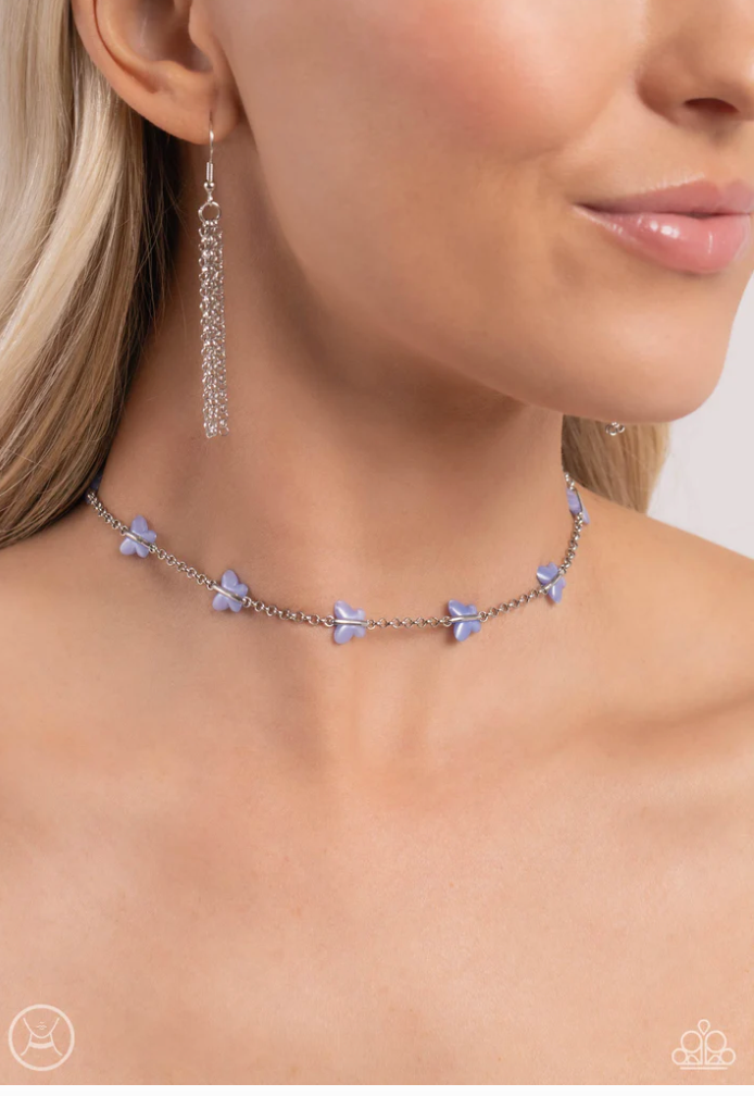 Infused along a row of dainty silver chain, a collection of Persian Jewel butterflies coalesces around the neckline for a whimsical finish. Features an adjustable clasp closure.