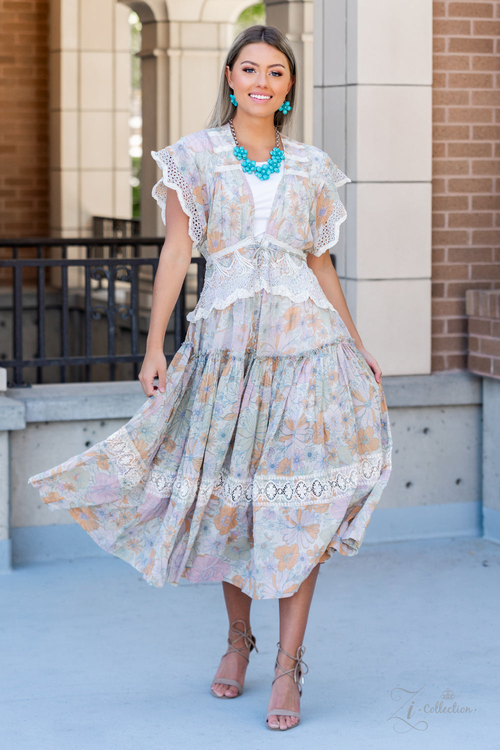Dainty silver wire delicately wraps around earthy turquoise stone teardrop petals that beautifully layer into bountiful blossoms. Featuring turquoise stone beaded centers, the harmonious stone flowers gracefully connect to a substantial silver chain for an authentically artisan look below the collar. Features an adjustable clasp closure.