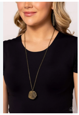 A beautifully crafted brass pendant with an antiqued finish gracefully hangs from a delicate brass chain. Embellished with the inspiring phrase "Bloom where you're planted" in a whimsical script font, the asymmetrical surface is enhanced by tactile brass flowers that provide a charming touch. This enchanting piece also features an adjustable clasp for added versatility and comfort.